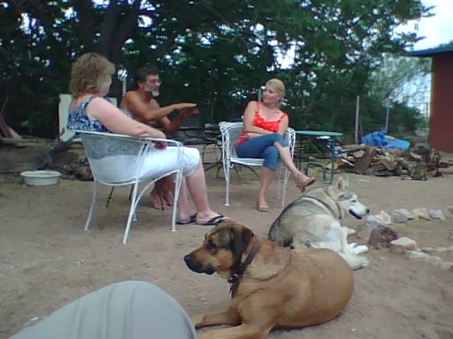 Anne and Dennice kick back in Charlie's Back Yard, the best place to eat in Bisbee!